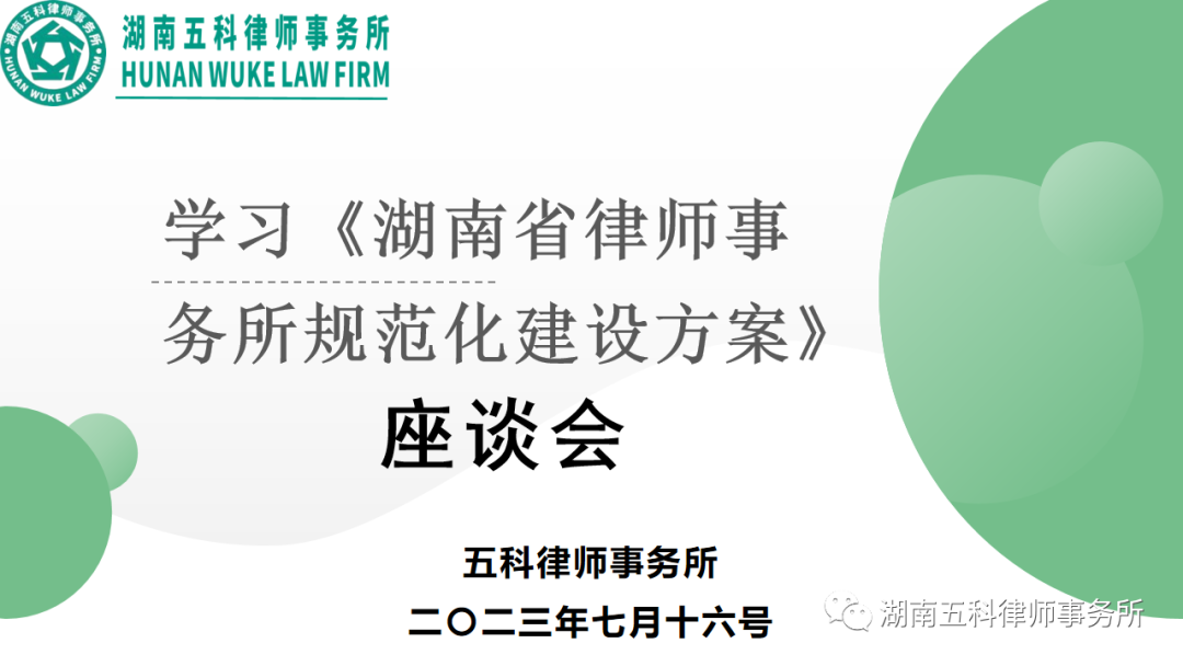 自收到怀化市律师协会《关于转发<湖南省律师事务所规范化建设实施方案>的通知》以来,五科律所一直高度重视,并在本次会议中组织学习了《湖南省律师事务所规范化建设实施方案》。